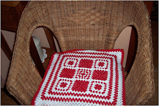 kuchyně ani letos neunikla mému červeno-bílému vánočnímu řádění. A tak k loňskému polštářku přibyl ještě druhý, který jsem navlékla na podsedák, ale rozměrem pasuje i na klasický polštářek.